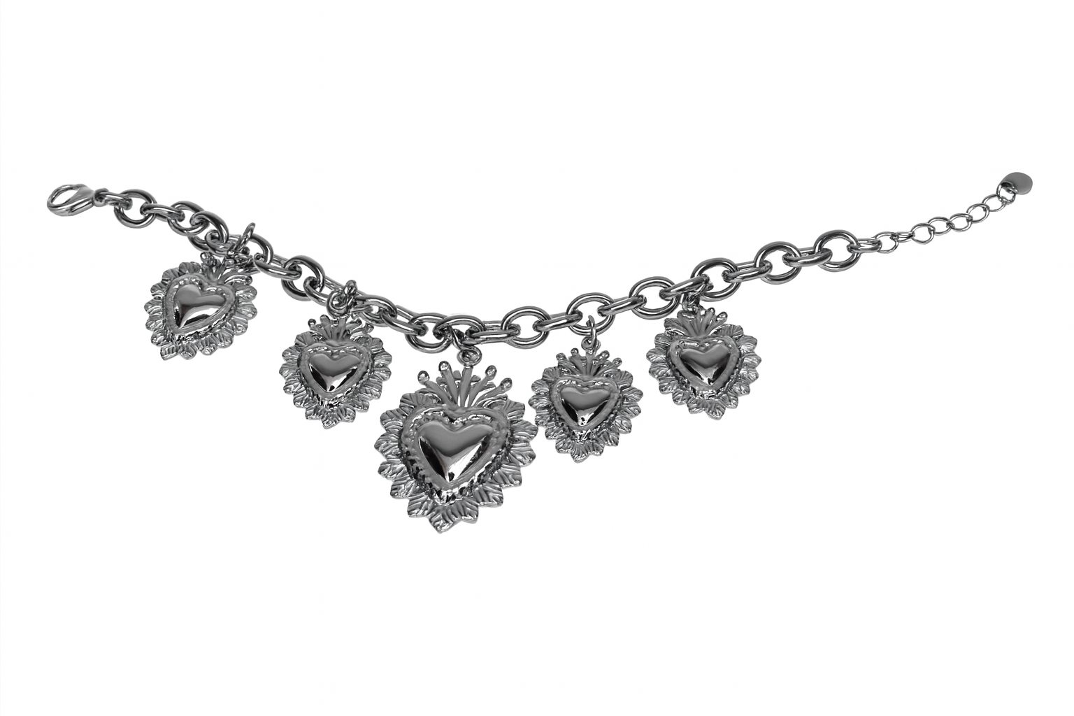 Bracciale in acciaio inox inossidabile con ciondoli cuore sacro di diverse dimensioni